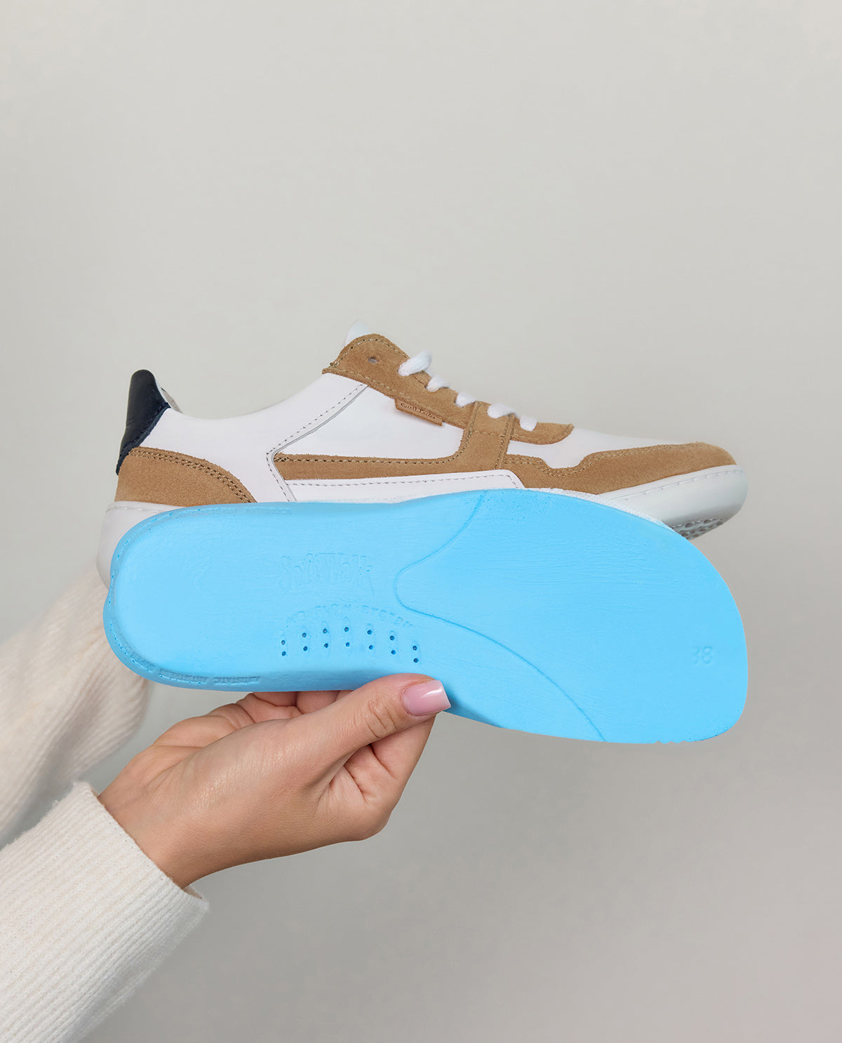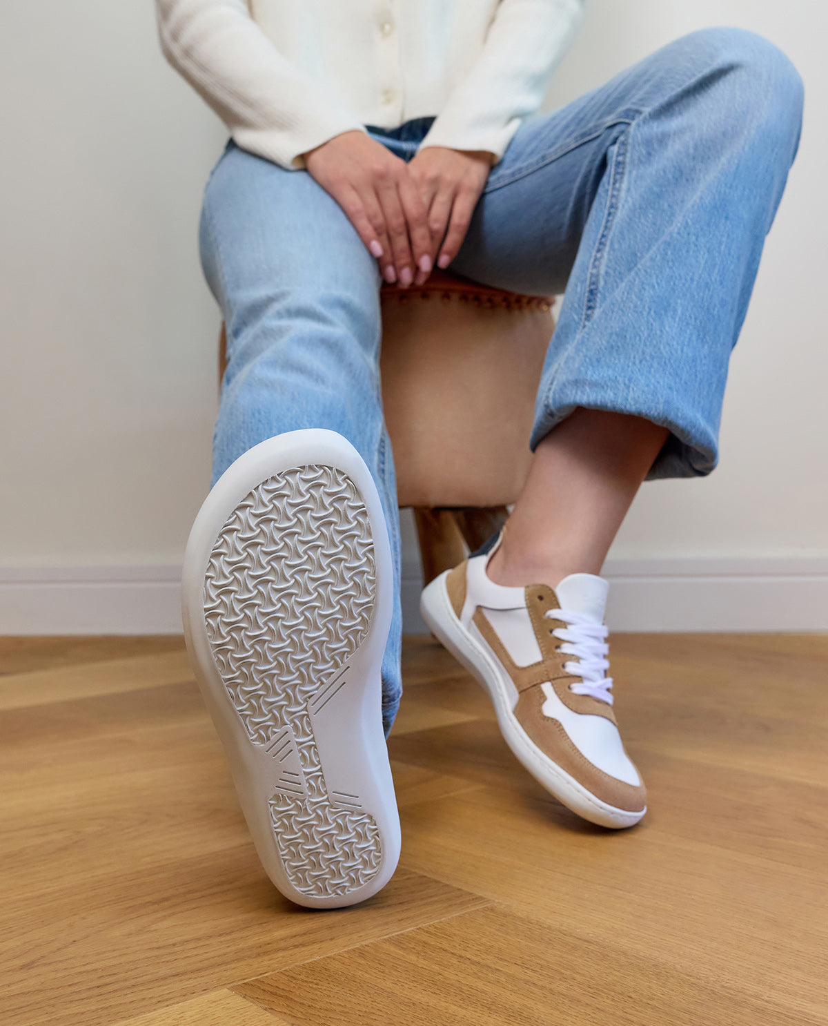 Laajan varvastilan ansiosta jalkasi saavat tarpeeksi tilaa levittäytyä luonnollisesti, mikä lisää vakautta ja vähentää väsymystä. Kevyt rakenne antaa todellisen paljasjalkatunteen ja tekee kävelystä miellyttävää, jopa pidemmillä matkoilla. Kumipohja tarjoaa varman pidon, kun taas polyuretaani-sisäpohja vaimentaa optimaalisesti. Hieno polyesterivuori ja joustava nahkapäällinen takaavat pitkäkestoisen käyttömukavuuden. "Amrei"-kengät valitsemalla saat paljasjalkakengät, jotka antavat jalkojesi hengittää, suojaavat samalla ja kuljettavat sinut tyylikkäästi päivän läpi.