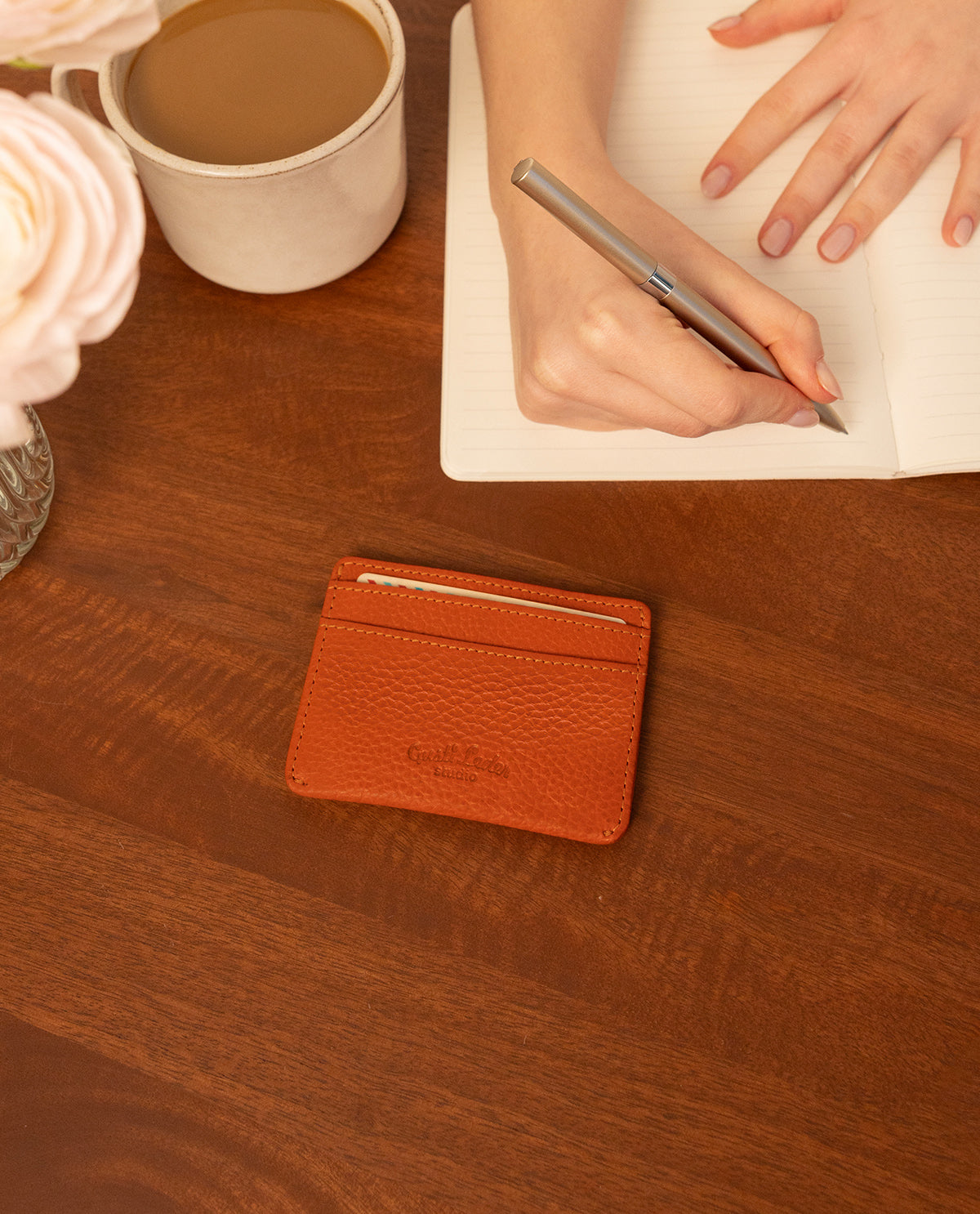 Käytännöllinen ja tyylikäs – "Qani"-korttikotelo oranssista nahasta