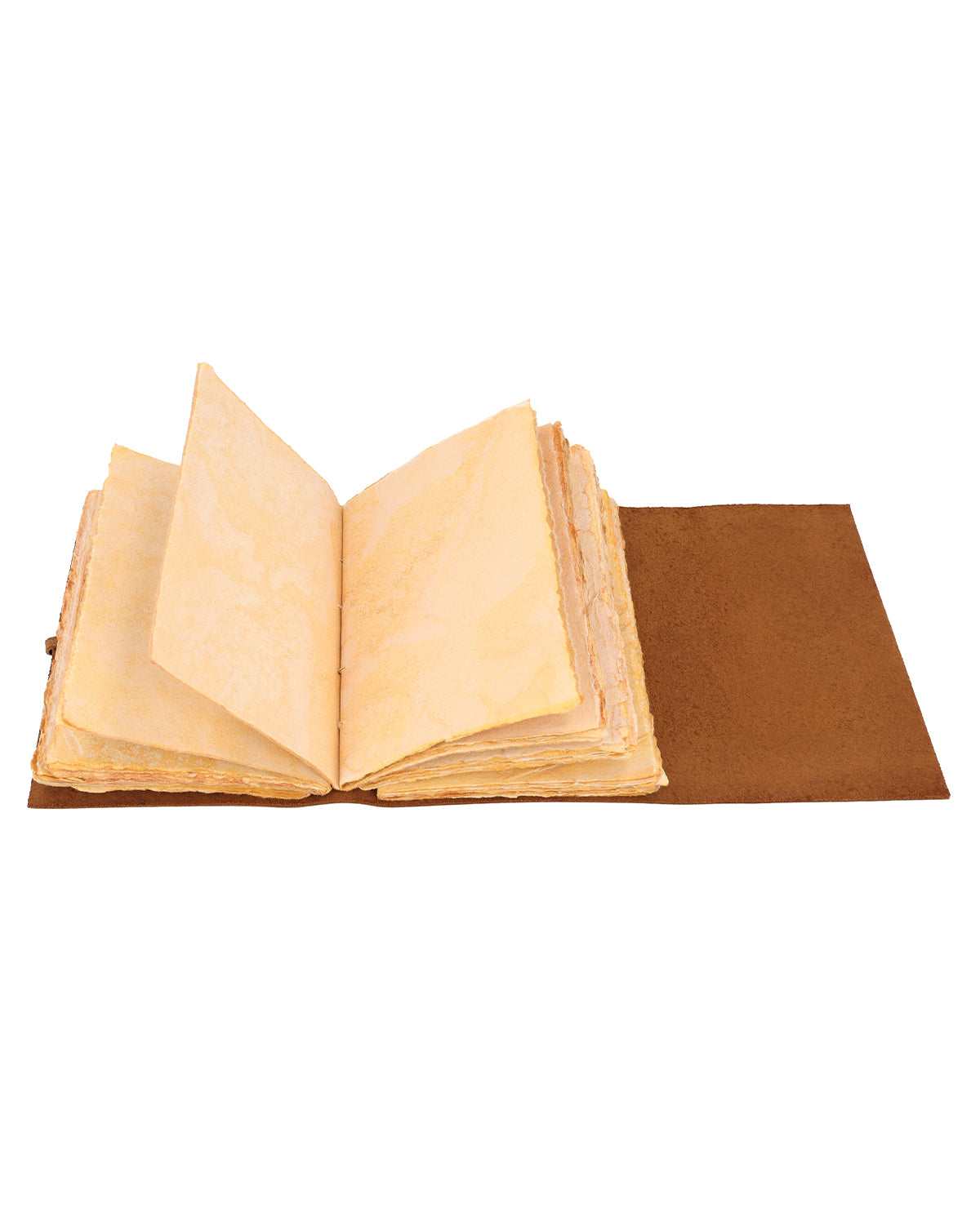 Klassisen ruskeanvärinen, nahkakantinen „Cajus“-kirjamme on ihanteellinen paikka tallentaa ideasi, luonnoksesi tai kokemuksesi aivan erityisellä tavalla. Kirjan sisällön kohokohta ovat lukuisat käsintehdystä paperista valmistetut sivut, jotka ainutlaatuisen rakenteensa ja epäsäännöllisten reunojensa ansiosta antavat jokaiselle merkinnälle historiallisen sävyn. Mitoiltaan 13 x 18 cm ”Cajus” on ihanteellinen välimuoto: se on hieman kompaktimpi kuin klassinen DIN A5 -muistikirja, mutta tarjoaa selvästi enemmän tilaa kuin pieni taskukokoinen muistikirja ja mahtuu siten lähes jokaiseen taskuun.