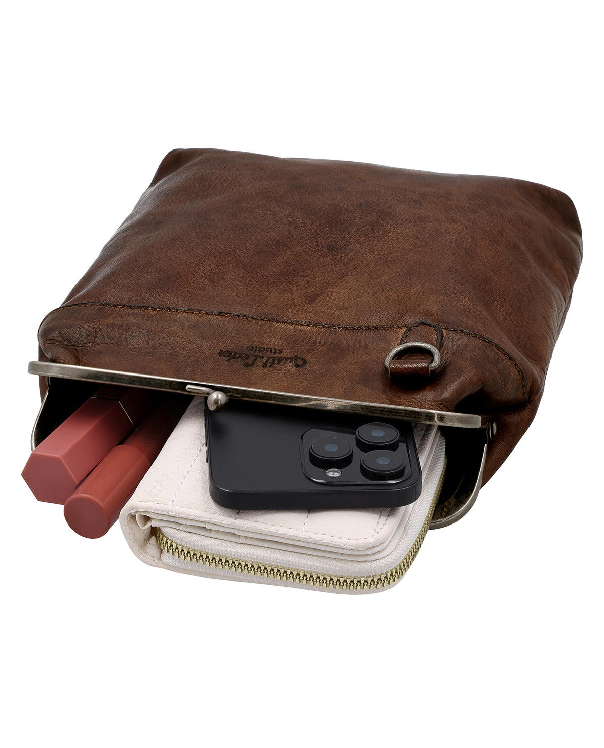 "Karlotta" yhdistää hillittyä hienostuneisuutta ja harkittua toiminnallisuutta, mikä tekee siitä luotettavan kumppanin jokapäiväiseen käyttöön. Kromittomasti parkitusta nahasta valmistettu laukku vakuuttaa pehmeällä tuntumallaan ja modernilla muotoilullaan. Käytännöllinen napsautuslukko mahdollistaa nopean avaamisen ja sulkemisen, kun taas säädettävä ja irrotettava kantohihna tarjoaa maksimaalisen joustavuuden – käytä sitä tyylikkäänä olkalaukkuna tai rennosti ristiin kantamalla. Huomaamaton integroitu AirTag-lokero tarjoaa lisäturvallisuutta matkoilla.