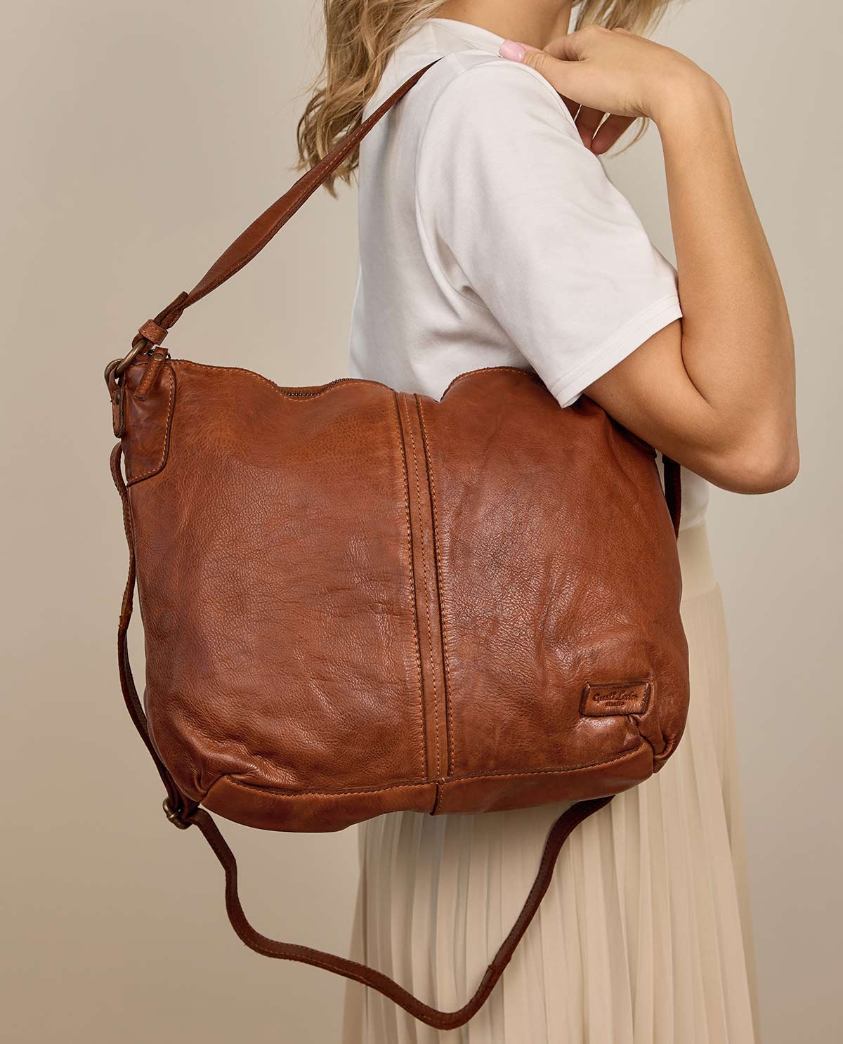 Oletko etsimässä klassista olkalaukkua, joka kestää sateessa? Silloin “Hannah” on juuri sitä mitä olet etsinyt! Tämä keskikokoinen olkalaukku on valmistettu vahvasta lehmännahasta ja se on hillityn tummanruskea. Pysyt trendikkäänä ja sinulla on silti tarpeeksi tilaa kaikelle tarvittavalle kaupungilla liikkuessasi tai toimistossa, tilavan sisäosan ansiosta.