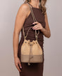 Säädettävän ja irrotettavan nahkahihnan avulla "Nuria" olkalaukkua voi kantaa joko olkapäällä tai crossbody-tyyliin. Mukava, harkittu sulkemismekanismi nahkanauhalla ja kullanvärisillä renkailla tarjoaa paitsi turvallisuutta, myös säilyttää rennon, huolettoman tyylin. Sisäpuolella laukku tarjoaa runsaan jaon vetoketjutaskulla ja kahdella avoimella taskulla, jotka auttavat sinua säilyttämään tavarasi siististi ja turvallisesti. Pehmeä sisävuori ja sisäänommeltu Gusti-logo kruunaavat designin. Täydellinen joka tilanteeseen, olipa kyseessä arki tai erityiset tilaisuudet.