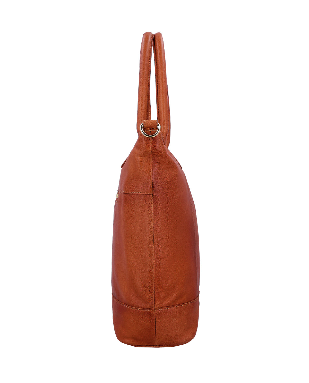 Tämä korkealaatuisesta parkitusta naudannahasta valmistettu kaunis olkalaukku tekee vaikutuksen jo pelkällä koollaan ja tarjoaa sinulle monipuolisuutta korkeimmalla tasolla. "Mia":n erittäin suuren sisätilan tilavuus on 10 litraa, joten siinä on riittävästi tilaa myös ostoksille. Mukaan mahtuu 15 tuuman läppäri, lompakko, pieni sateenvarjo, erilaisia muistikirjoja, avaimet ja penaali. Lisäksi suuri avausaukko tekee laukun käytöstä mukavaa. Takana on myös sivutasku, johon voit kätkeä tilapäisiä tavaroita, kuten kuulokkeet tai avaimet.
