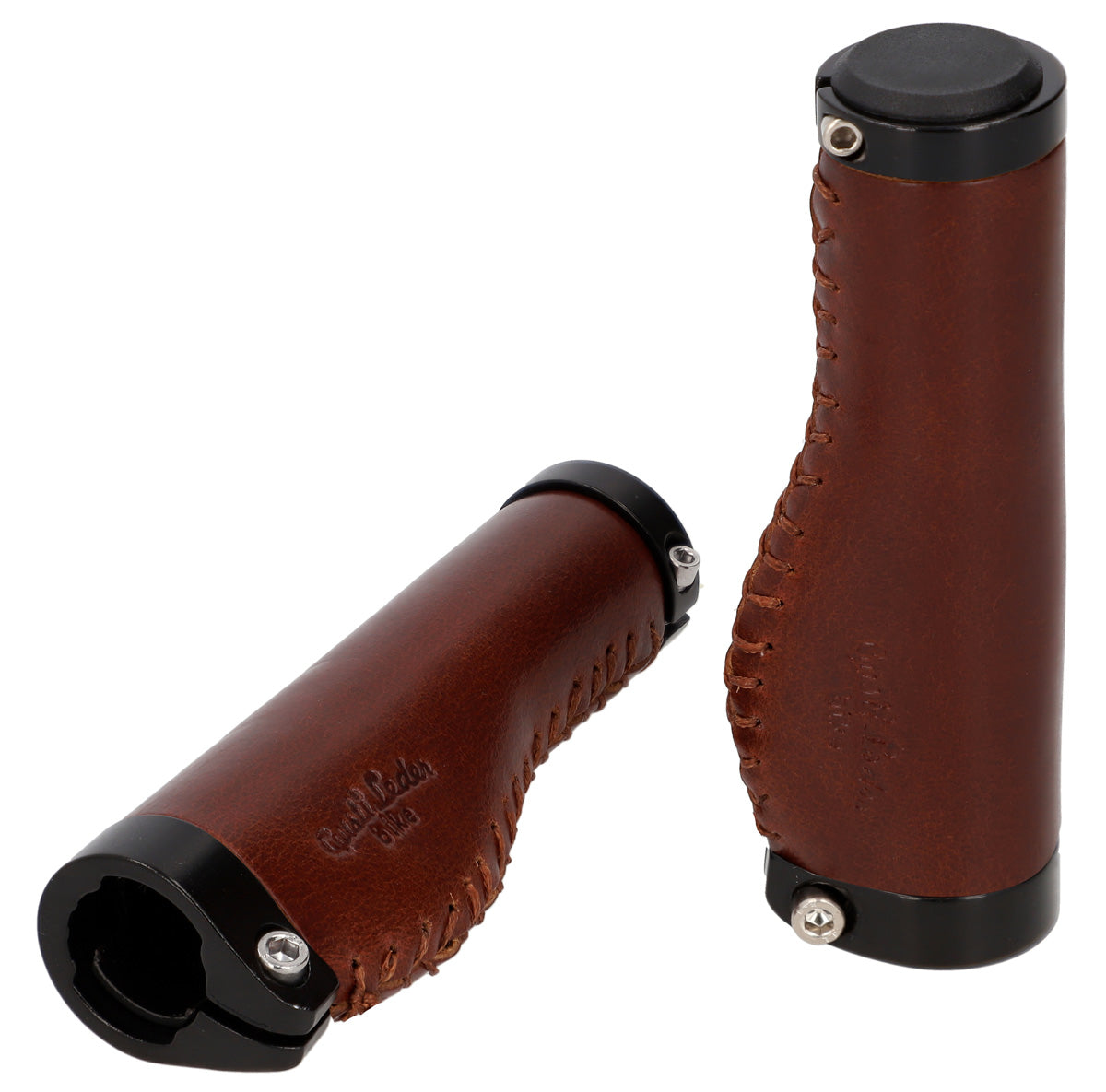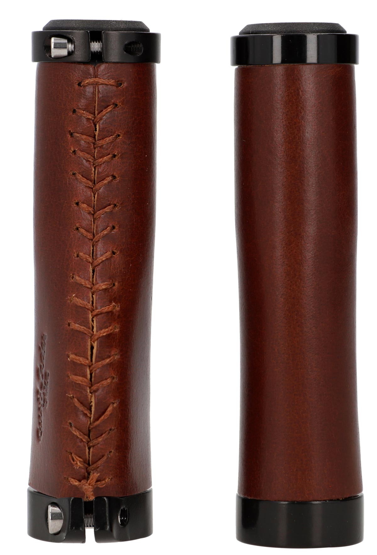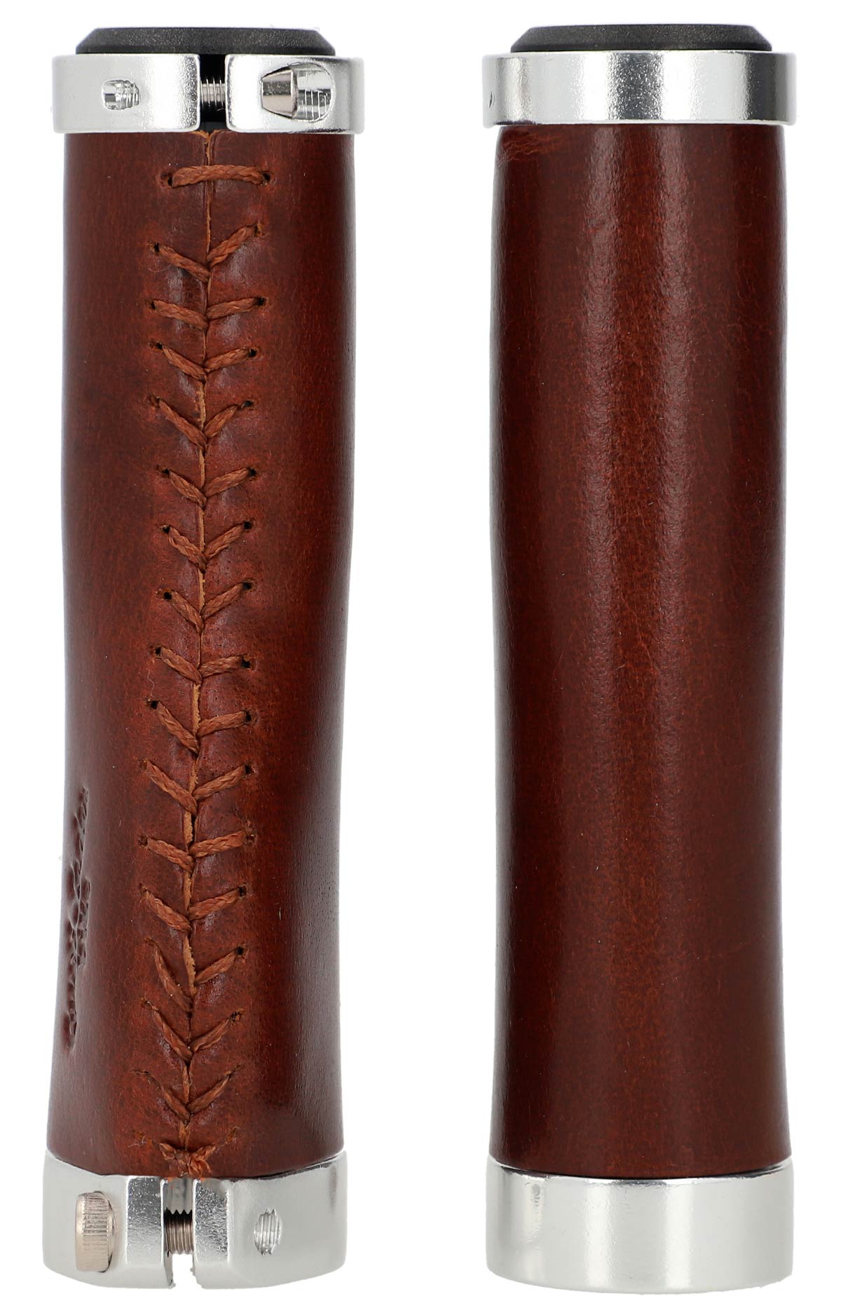 Nahkaiset ohjaustangon kahvat "Phil A." sopivat visuaalisesti yhtä hyvin trendikkääseen yksivaihteiseen pyörään kuin klassiseen hollantilaiseen pyörään ja ne on helppo asentaa. Niiden korkealaatuinen materiaaliseos, joka koostuu värillisestä alumiinista ja 100% aidosta nahasta, takaa erinomaisen pidon ja jatkuvasti hyvän ohjauskyvyn. Samalla ne mukautuvat täydellisesti käsiesi anatomiaan, vaimentavat iskuja ja tärinää ja lisäävät näin oteturvallisuutta. Lyhyen sisäänajon jälkeen et enää halua luopua näiden kahvojen tuntuvasta mukavuudesta ja miellyttävästä tuntumasta.