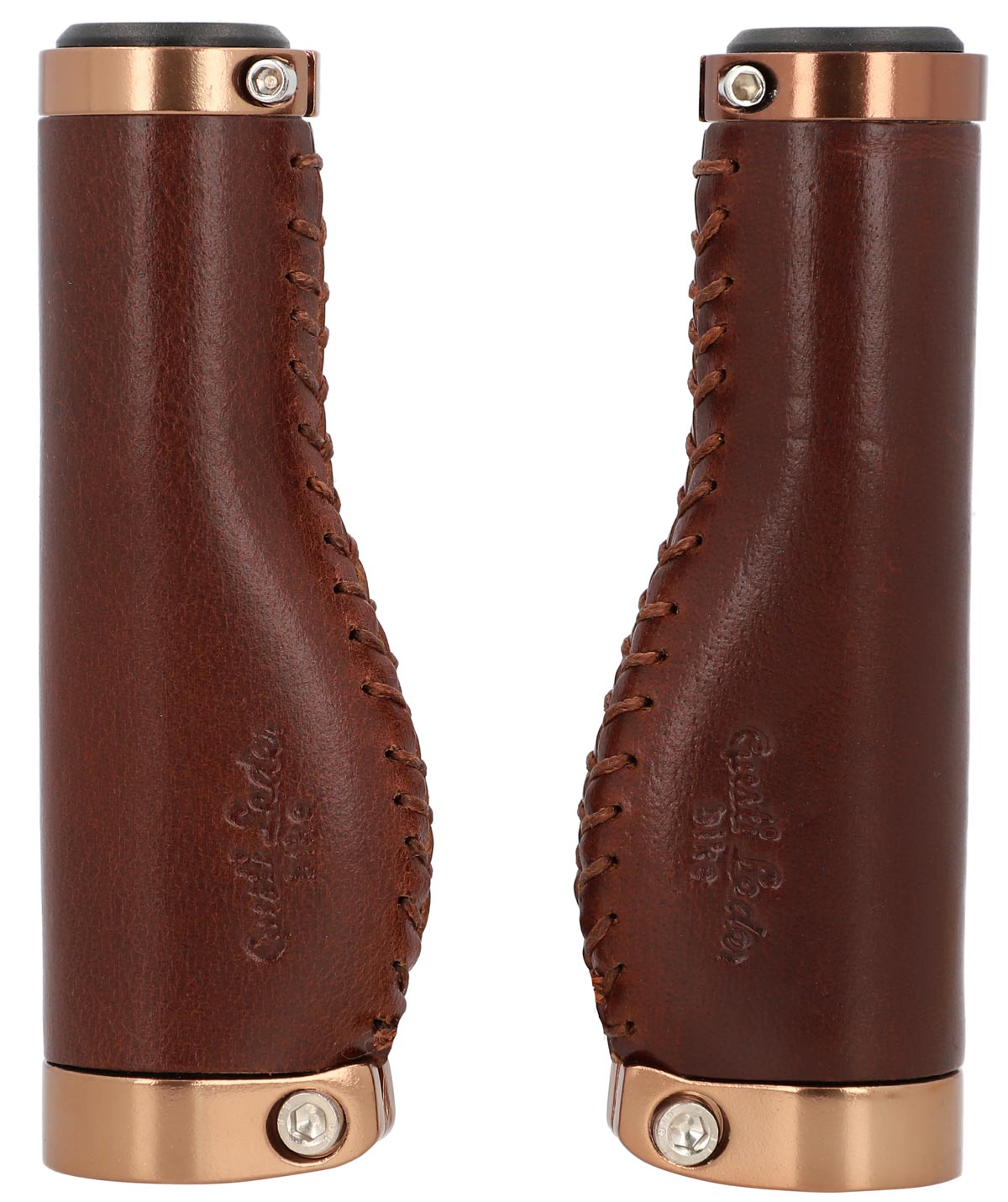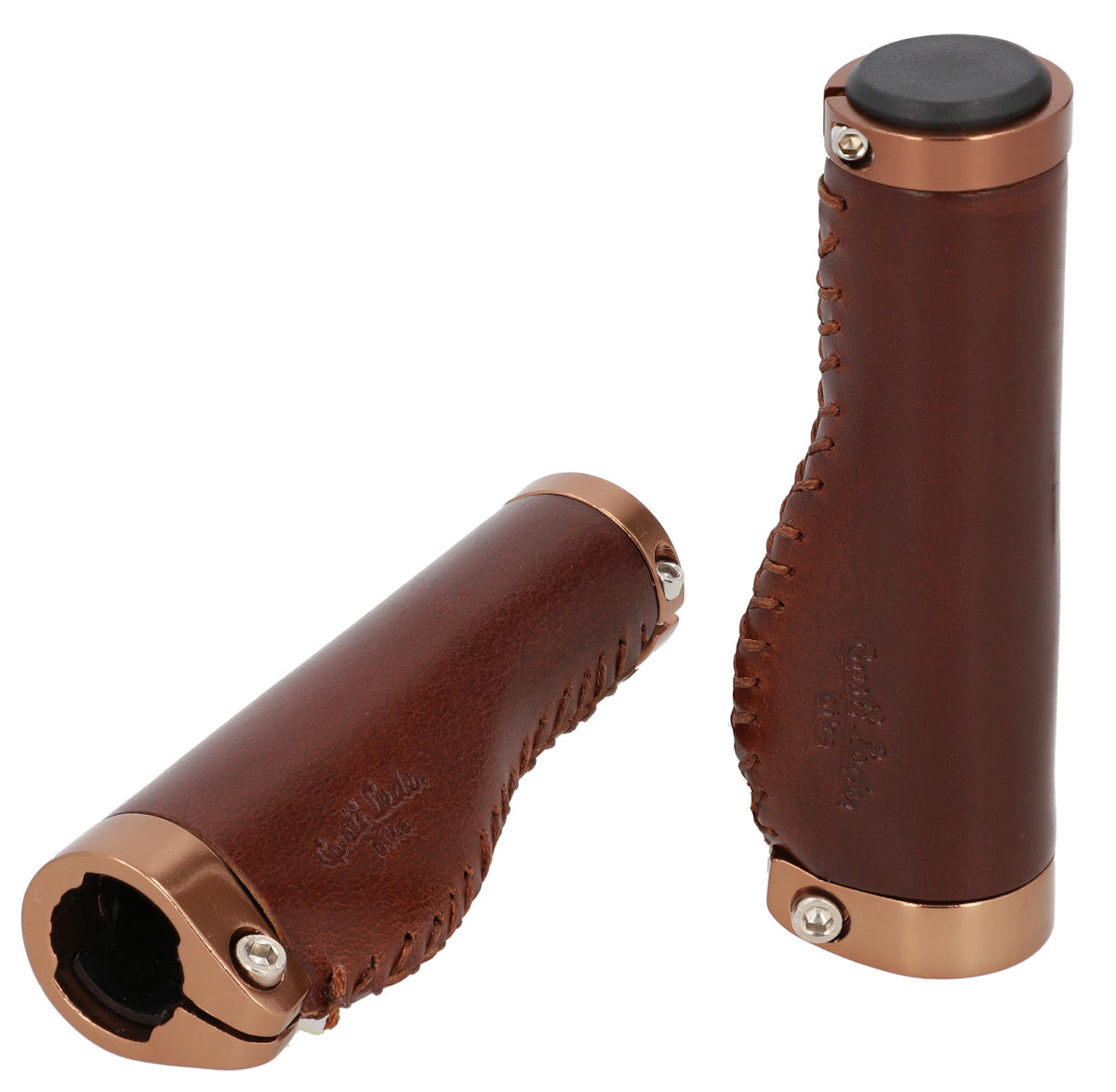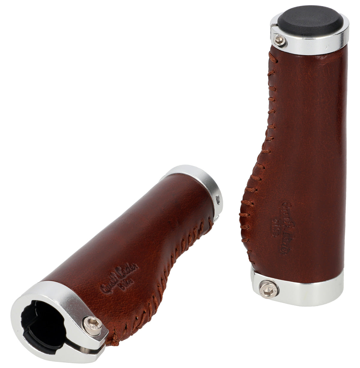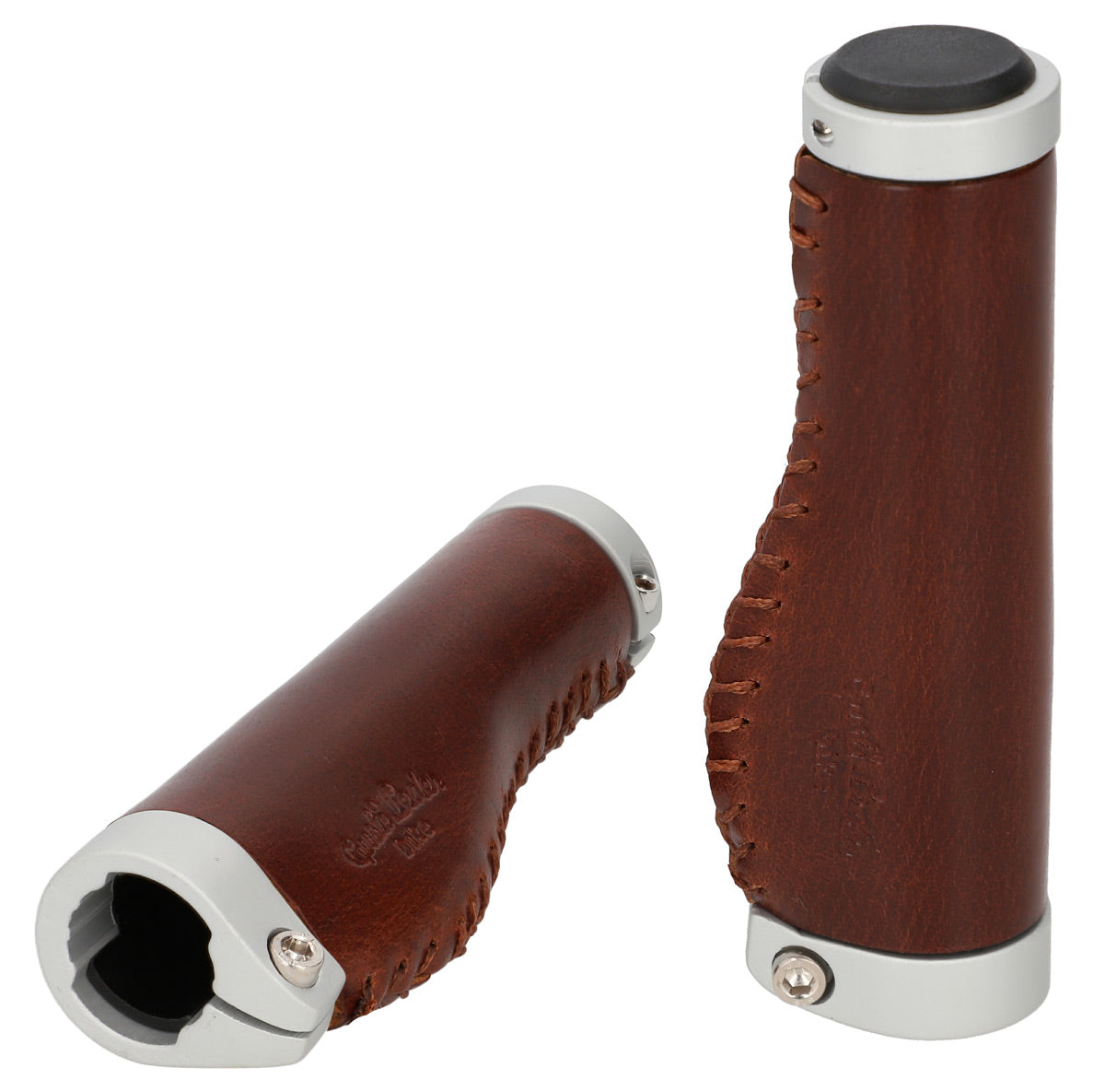 Nahkaiset ohjaustangon kahvat "Phil A." sopivat visuaalisesti yhtä hyvin trendikkääseen yksivaihteiseen pyörään kuin klassiseen hollantilaiseen pyörään ja ne on helppo asentaa. Niiden korkealaatuinen materiaaliseos, joka koostuu värillisestä alumiinista ja 100% aidosta nahasta, takaa erinomaisen pidon ja jatkuvasti hyvän ohjauskyvyn. Samalla ne mukautuvat täydellisesti käsiesi anatomiaan, vaimentavat iskuja ja tärinää ja lisäävät näin oteturvallisuutta. Lyhyen sisäänajon jälkeen et enää halua luopua näiden kahvojen tuntuvasta mukavuudesta ja miellyttävästä tuntumasta.