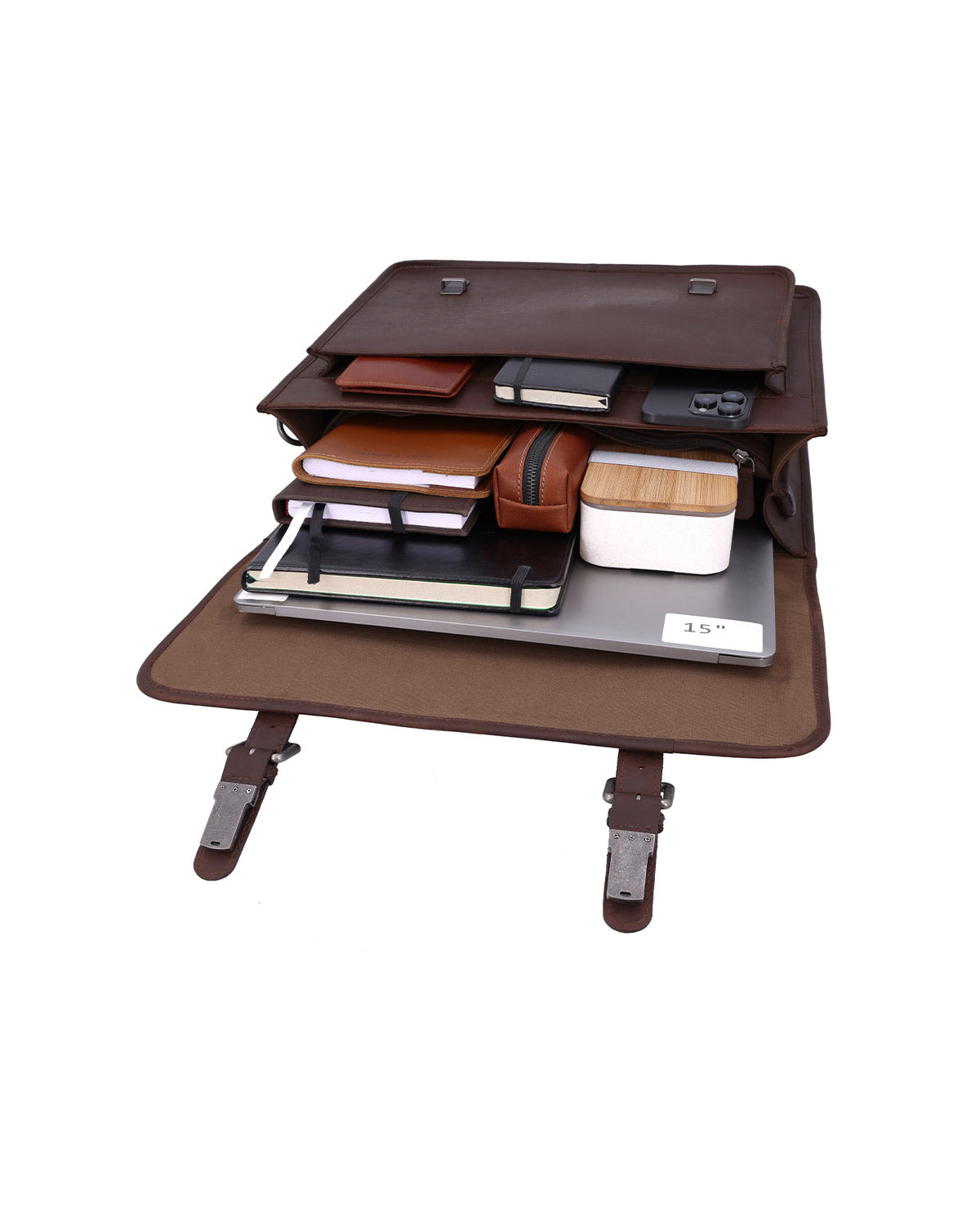 "Elmar" ja sen avara, keskeltä jaettu pääosasto tarjoavat ilman ongelmia tilaa DIN A4 -kansioille ja kaikenlaisille asiakirjakansioille, samoin kuin kalenterille, kirjoitusvälineille, lounaspaketille, pienelle juomapullolle jne. Teknologiset laitteet, joiden koko on enintään 15", mahtuvat erityisesti laukun suunnitteluun integroituna laptop-osastoon. Myös keskelle sijoitettu vetoketjutasku sekä erilaiset pistotaskut ja "Elmarin" etupuolella oleva tasku tarjoavat mahdollisuuden säilyttää pienempiä tavaroita käden ulottuvilla ilman, että niitä tarvitsee etsiä pitkään. Pituussäädettävä ja irrotettava olkahihna mahdollistaa "Elmarin" ihanteellisen mukauttamisen yksilöllisiin kantotottumuksiisi, kun taas kaksi napsautuslukkoa piikkisoljen ilmeessä varmistavat, että kaikki on suojattu pölyltä ja kosteudelta matkalla.