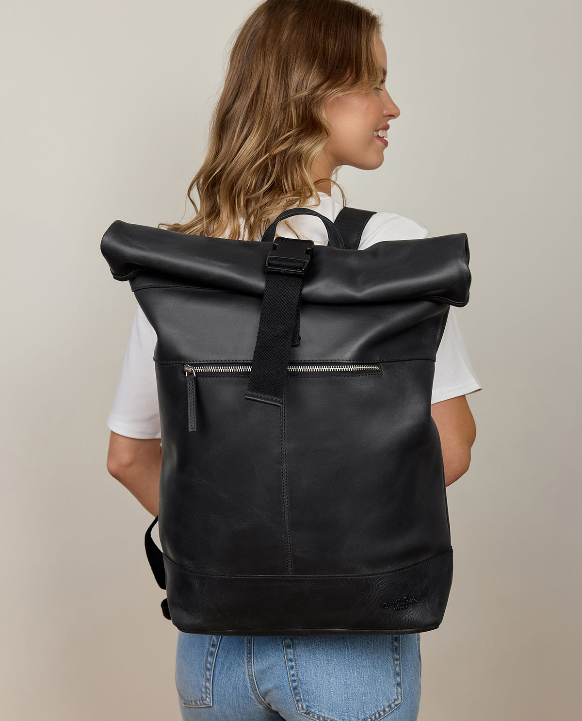 Trendikäs ilme ja ajaton muotoilu - nahkainen Roll Top reppu "Mattis"