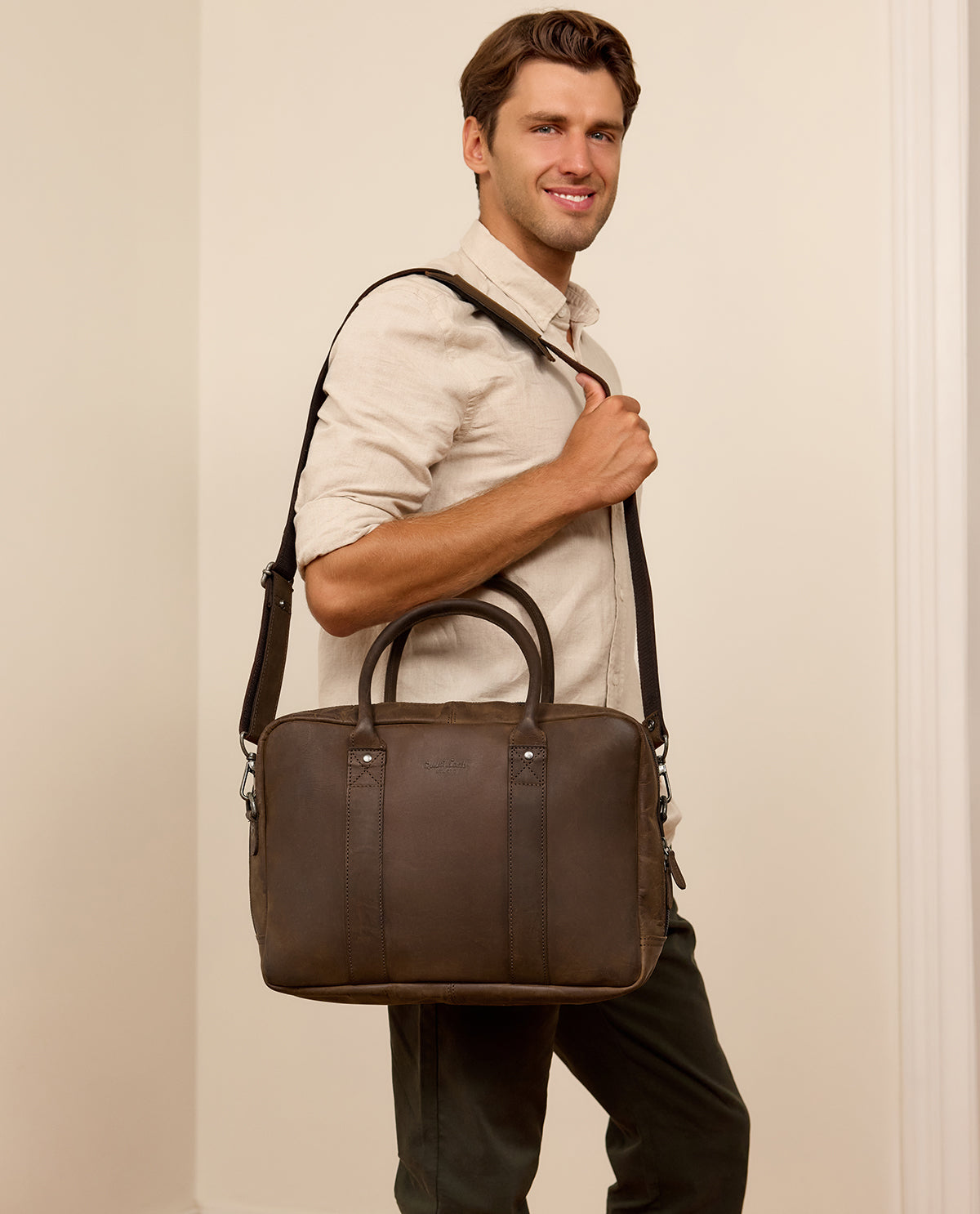 Tilava sisätila tarjoaa runsaasti tilaa kannettavalle tietokoneelle, asiakirjoille ja muille tärkeille tarvikkeille, kun taas useat pienemmät taskut auttavat pitämään järjestyksen. Säädettävä olkahihna ja tukevat kahvat tekevät kantamisesta mukavaa ja joustavaa. Huolellinen valmistus takaa kestävyyden ja pitkäikäisyyden, jotka tekevät laukusta pitkäaikaisen kumppanin.