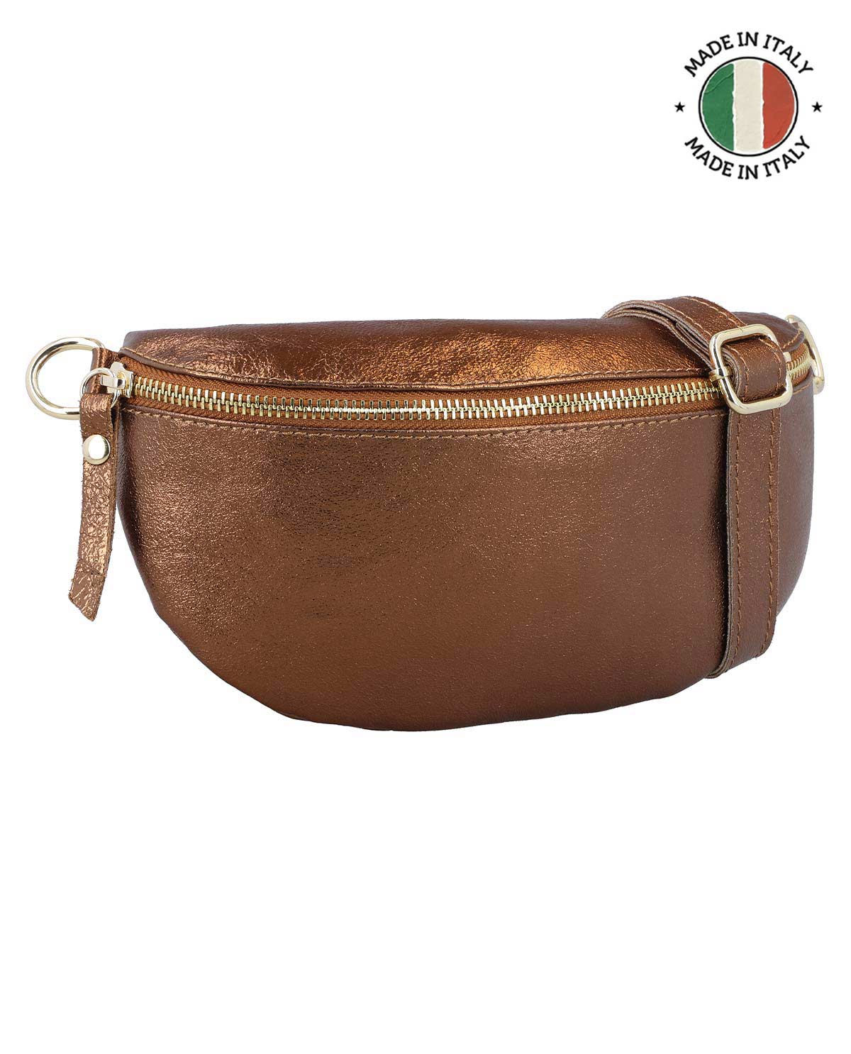 "Brinja" olkalaukku hurmaa tyylikkäällä muotoilullaan ja korkealla toiminnallisuudellaan. Tunnusomainen, puolipyöreä siluetti ja täysi vetoketju yläreunassa tarjoavat paitsi riittävästi tilaa tärkeimmille tavaroillesi, myös turvallisuutta kaikille henkilökohtaisille esineillesi. Laadukas nahka antaa laukulle tyylikkään ilmeen, joka sopii täydellisesti moderniin arkeesi. Sisäpuolella on myös hienosti painettu "Made in Italy" -logo, joka korostaa tämän laukun alkuperää ja laatua vaikuttavalla tavalla.