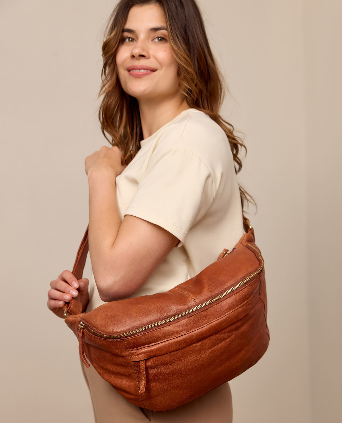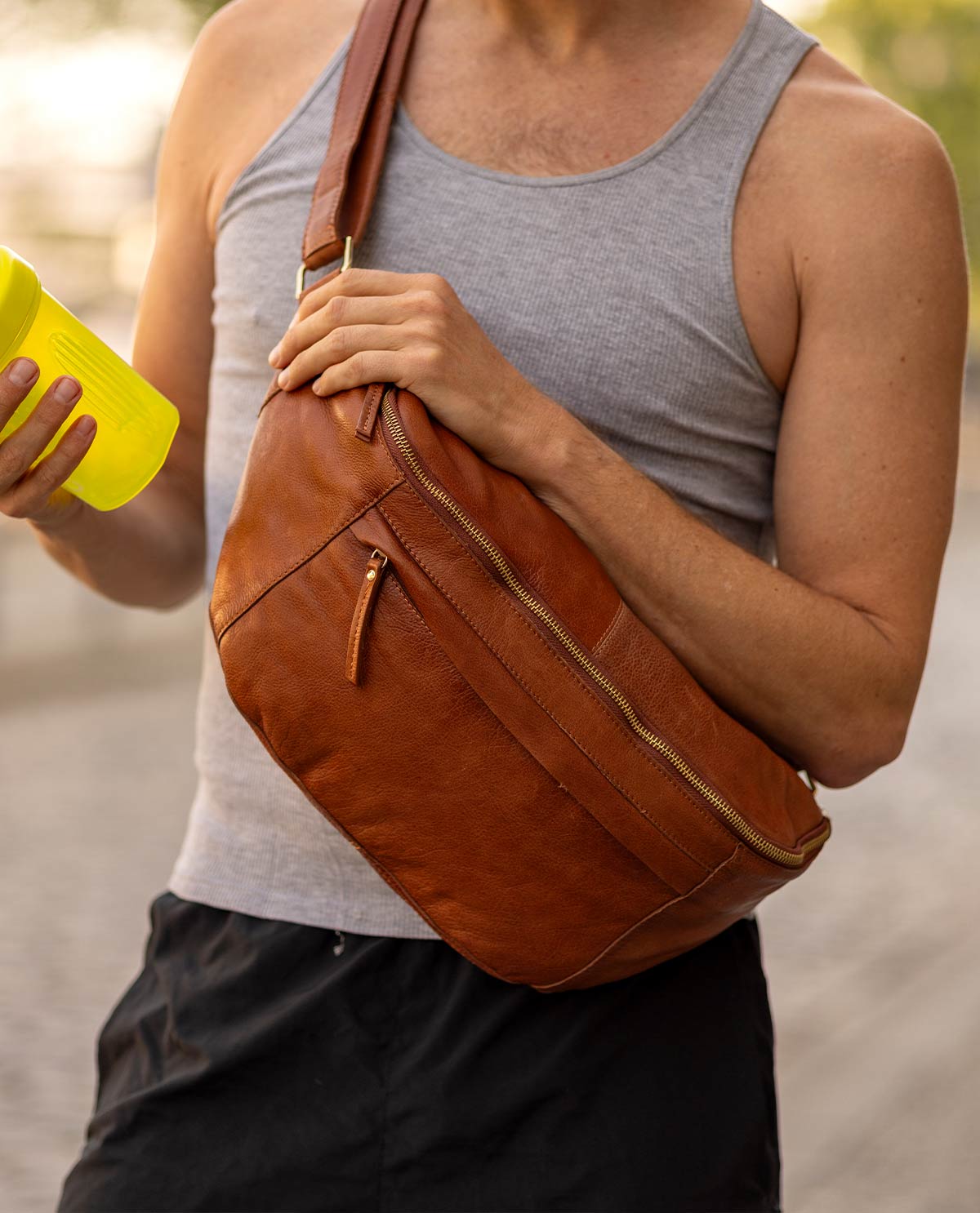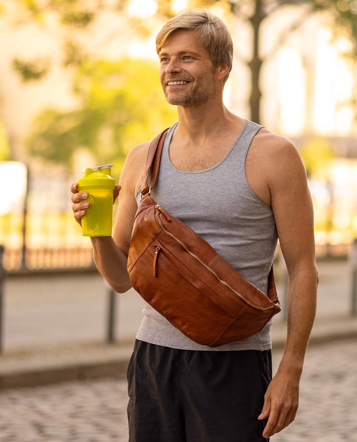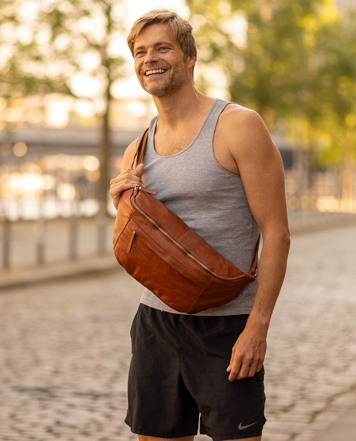 Sillä tämä tilava laukku kestävästä nupukkinahasta muistuttavassa suuressa vyölaukkumuodossa yhdistää kompaktin repun kaikki edut tämän hetken tyylikkääseen ja rennon vyölaukkutyyliin - ei vähiten nahkan miellyttävän pehmeän rakenteen ja hopeanväristen vetoketjujen tyylikkyyden vuoksi. Tällä tavoin "Esben" voi seurata sinua minne tahansa ilman, että sinun täytyy luopua suosikkiesineistäsi tai coolista olemuksestasi. loppujen lopuksi "Esben" tarjoaa aina riittävästi tilaa älypuhelimellesi, avaimillesi ja lompakollesi, taskukalenterille, kynäkotelolle ja paljon muulle!