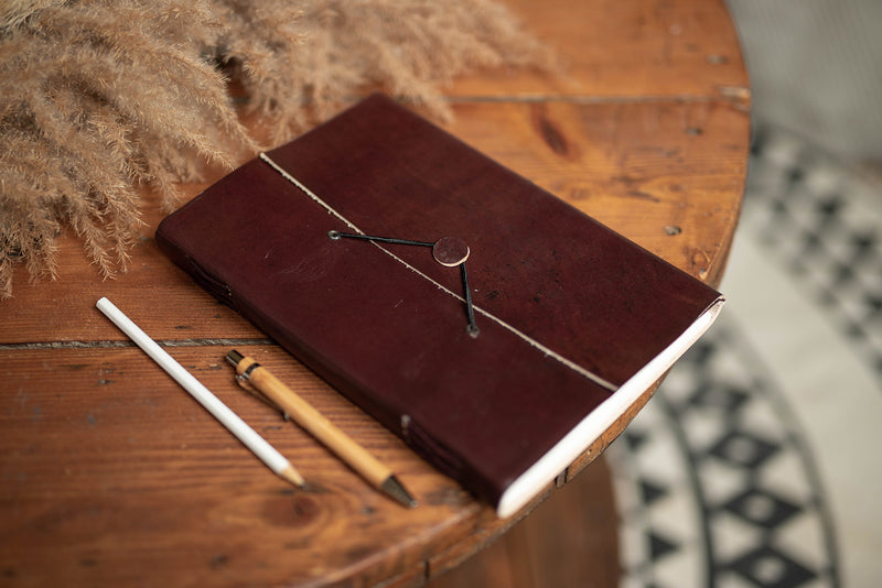Nahkakantisissa muistikirjoissa äiti säilyttää erityiset hetket ikuisesti