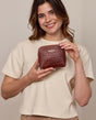 Hukkuuko sinulta usein käsilaukkusi sisältö ja etsit ikuisuuden ripsiväriäsi tai muita pikkuasioita? Silloin "Leo" on juuri sinulle sopiva! Tämä kaunis, pieni pussukka tuo järjestystä laukkusi loputtomiin syvyyksiin ja vakuuttaa tyylikkäällä muotoilullaan. Valmistettu korkealaatuisesta ruskeasta naudannahasta, se huokuu luonnollista eleganssia, joka sulautuu vaivattomasti arkeesi. Ympäröivä aksenttivetoketju korostaa klassista ulkonäköä ja tekee "Leo"-pussukasta tyylikkään seuralaisen – hillitty, mutta silti katseenvangitsija.